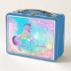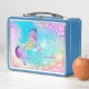 Cute unicorn pink aqua faux glitter custom metal lunch box