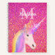 Make back to school fun with this Cute Unicorn Pink Glitter Personalised Notebook. It is designed with a pretty bright pink and gold faux glitter background on both sides. A white unicorn with pastel rainbow hair and flowers is on the front cover. To make it extra special, it is also monogrammed and personalised with name in white script lettering. CLICK PERSONALIZE TEMPLATE OPTION AND FOLLOW THE PROMPTS