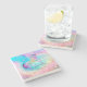 Cute unicorn pink Glitter rainbow aqua monogram Stone Coaster