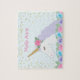 Cute Unicorn Pink & Purple Floral Gold Dots Name Jigsaw Puzzle