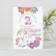 A cute unicorn themed design for your daughter’s second Birthday Party, along with colourful simple florals in shades of pink, teal and yellow. All of the text can be easily personalised to your own details. On the back, the background is pink to coordinate with the pink on the front with a pattern of teal stars. You can make further changes if you wish via the customise further option, to font styles and colours, and also the background colours.