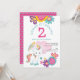 Cute Unicorn Pink Teal Girl 2nd Birthday Party Invitation