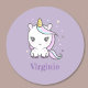 A purple sticker with a cute unicorn in pastel colour and a customisable forename to add to all of your affairs and your letters!