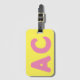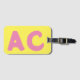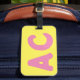 A bright and stylish monogrammed luggage tag in pink and yellow