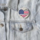 Cute USA Flag Heart Gold Stars Pin Button. You can customise your button size. This is a patriotic red, white and blue American flag in a heart shape with an adorable gold star background pattern.