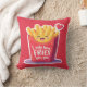 A cute and colorful cartoon illustration of a red French fries carton with a happy kawaii smiling face. The design features a floating red heart and the romantic funny pun quote "I only have FRIES for you". The image has a white sticker border, making it perfect for Valentine's Day greeting cards, fast food lovers, and humorous romantic gifts. Isolated design.