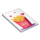 A cute and colorful cartoon illustration of a red French fries carton with a happy kawaii smiling face. The design features a floating red heart and the romantic funny pun quote "I only have FRIES for you". The image has a white sticker border, making it perfect for Valentine's Day greeting cards, fast food lovers, and humorous romantic gifts. Isolated design.