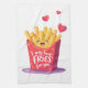 A cute and colorful cartoon illustration of a red French fries carton with a happy kawaii smiling face. The design features a floating red heart and the romantic funny pun quote "I only have FRIES for you". The image has a white sticker border, making it perfect for Valentine's Day greeting cards, fast food lovers, and humorous romantic gifts. Isolated design.