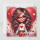 Cute Valentine sassy girl with red heart love Holiday Card