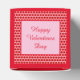 This awesome favour box features a cute little Valentines Bee. The Bee has a furry yellow body with black stripes and red antennae. It is holding on to a red heart shaped piece of honeycomb and is surrounded with sunflowers. Each flower has red petals to match the romantic bee and a black centre. There is white text in the middle of the honeycomb that says the romantic message "Bee mine". This little bee is ideal for showing your love for someone special.