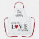 Personalised cooking with love for my hubby Valentine's Day gift apron for a cook chef or kitchen lover wife with modern typography and a red heart over a black background.