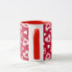 A cute mug featuring a lovely lace inspired tossed heart pattern in classic red and white, perfect for a Valentine's Day gift!