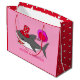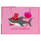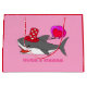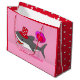 Gift bag with cute Valentine's Day Shark wearing a red stovepipe hat with little hearts and carrying red and pink balloons. The text says "Hugs & Kisses". The design is customizable and you can personalize the text.