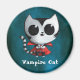 Vampire Count Kitty Cat. Straight from his vast, dark and scary tomb in Transylvania, the Land of the Dead – here comes the cutest vampire cat ever. Huge round eyes, adorable smile, little ears and of course – little fangs (like all blood sucking vampires). Every cat lover should adopt this lovely Halloween cute vampire kitten.
