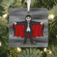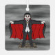 A cute cartoon vampire dressed as Dracula spreads his red-lined cloak in this original work by Richard H. Fay.