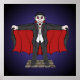 A cute cartoon vampire dressed as Dracula spreads his red-lined cloak in this original work by Richard H. Fay.