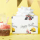 This custom wrapping paper features a cute Halloween theme. An image of a girl vampire is pictured at the bottom, standing in front of her haunted castle. A cute little black cat is sitting next to the vampire girl, and a full moon is shining bright in the night sky. A couple of spooky bats are flying above. It's great for a festive birthday party or other Halloween celebration.