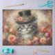 Cute Victorian Cat in Top Hat Decoupage Tissue Paper