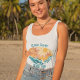 Cute vintage style women's tank tops featuring beautiful teal ocean waves and a bright sun with palm trees in the summer. The cool grunge design is complimented with distressed teal blue custom text for your family vacation or beach trip.