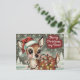 A cute deer wishes a merry christmas, cute vintage nostalgia kitsch postcard.