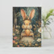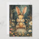 Cute Vintage Easter Bunny and Flowers Holiday Card, Vintage Woodland Rabbit Illustration with Golden Egg, fairytale style floral forest. DM if you want to have this design on other products.