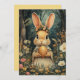 Cute Vintage Easter Bunny and Flowers Holiday Card