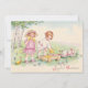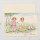 Cute vintage little girls with Easter bunny and baby chicks holiday card. Personalise this and add your own text or message on back.