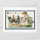 Cute Vintage Easter Hen, Rooster & Girl Postcard