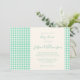 Cute Vintage Mint Green Gingham Plaid Baby Shower Invitation with Script Typography