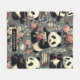 Cute Vintage Panda Floral Fleece Blanket