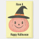 Cute, vintage picture of a pumpkin wearing a witch's hat, is featured on this Halloween magnet. With message, "Have A Happy Halloween", making this magnet a cute decoration for your home or office for Halloween! Makes a great little gift too!