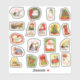 Adorable retro holidays sticker set ephemera with festive motifs: Santa, snowman, reindeer, candy cane, bells, toys, dog, cat, birds, stocking, hobby horse, Christmas tree, presents, wreath, angel, sleigh in snow, consisting of 19 stickers, perfect as holiday stationary envelope seals, mailing, journaling, scrapbooking, diary making, school / nursery holiday crafts etc.