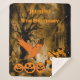 A cute little blanket for the Birthday girl on Halloween. Perfect for a gift, this design features cute little wandering witch with her friendly companions Jack O lanterns, raven and cobwebs with the background of a dark tree. The text can be easily customised.