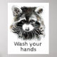 Cute Washroom Wash your Hands Raccoon Animal Art Poster