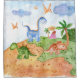 This adorable dinosaur shower curtain for kids is sure to make your dinosaur lover happy as a Tyrannosaurus Rex. This design features a cute watercolor design with a prehistoric world full of dinosaurs. Palm Trees, volcanos, and different kinds of dinosaurs complete this design. It's a perfect gift idea for a baby shower or a birthday gift for kids who love dinosaurs.