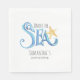 Designed to coordinate with Do Tell A Belle's "Under the Sea" theme, these cute baby shower napkins feature the word "sea" with a starfish in watercolor shades of blue and orange. Perfect for boy baby showers, the mum-to-be's name is set in hand-lettered style typography. Personalise with your details using the easy template. Ideal for a beach or nautical-themed celebration. To see more designs like this, visit www.zazzle.com/dotellabelle.