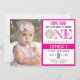 Cute Watercolor Baseball Photo Girl 1st Birthday Invitation