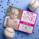 The Cute Watercolor Baseball Photo Girl 1st Birthday Invitation is a charming and adorable invitation designed with a watercolor aesthetic. With a pink colour scheme and an illustration of a little rookie baseball player, it captures the excitement of a baseball-themed celebration. The typography is playful yet elegant, and the invitation incorporates various thematic elements related to baseball. Perfect for parents who appreciate artistic details, this invitation emphasizes the parent’s love for sports and marks their kid’s milestone 1st birthday. It strikes a balance between cuteness and sportsmanship. A space for your little one's photo adding a personal & stylish touch as well as creating a visually appealing and engaging invitation for a memorable celebration.