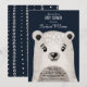 Cute watercolor bear minimalistic navy blue and beige boy baby shower invitation. Gender neutral
