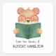 CUTE WATERCOLOR BEAR READING BOOK BOOKPLATE SQUARE STICKER