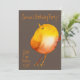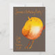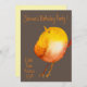 A funky, cool cute colourful watercolor canary yellow bird birthday party invitation suitable for a young girl with a modern simple elegant hand drawn watercolor illustration with brown background. The text is fully able to be customised to include your own personal details.