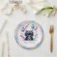 Cute Watercolor Black Kitten Balloons Birthday Paper Plate