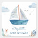 Cute Watercolor Boat Nautical Baby Shower Square Sticker