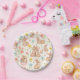 Cute Watercolor Bunnies & Flowers Pattern Paper Plate