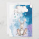 Boys' personalised, custom, watercolor bunny baby shower invitations. Pretty double sided invites for boy baby showers with a cute, modern cartoon illustration of a whimsical grey / grey bunny rabbit painted in watercolors sitting under a white raining cloud. The background is a contemporary blue and lilac watercolor. Chic, sweet, trendy, fun, fashionable, affordable boy Baby Shower invites for your baby bunny themed showers. These stylish, adorable digital watercolour effect invitations are printed / decorated on both sides / have printing on the front and back / reverse sides. If you need any assistance customising your product please contact me through my store and I will be happy to help.