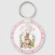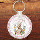 Cute Watercolor Bunny Floral Wreath Easter Key Ring
