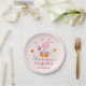 Cute Watercolor Bunny in Garden Kids Birthday Paper Plate
