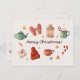 Colorful cozy cute Christmas card with colorful cozy cute hot cocoa with marshmallows and candy cane. Winter season can’t forget mittens, toque, lantern, hot tea and tea pot to warm up your holiday season. Great Christmas card for friend and family.