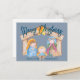 Cute Watercolor Christmas Nativity Scene on Blue Holiday Postcard