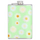 Cute watercolor colourful Daisy Pattern Green Hip Flask